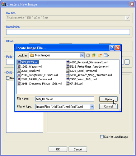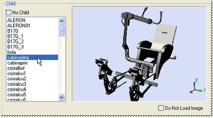 If you are adding a VRML file, you may be able to select a Child node. To do this, disable the No Child check box in the Child region of the dialog. A list will be populated if Child nodes are available for the selected image.