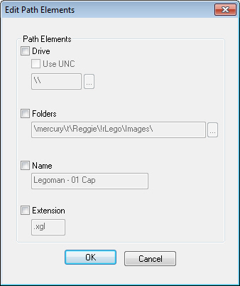 ) button in the toolbar.Path Elements refer to the various sections of a path name of an Image. To change one (or more) path element, select the check box and enter the information that you want to use for the selected image(s).