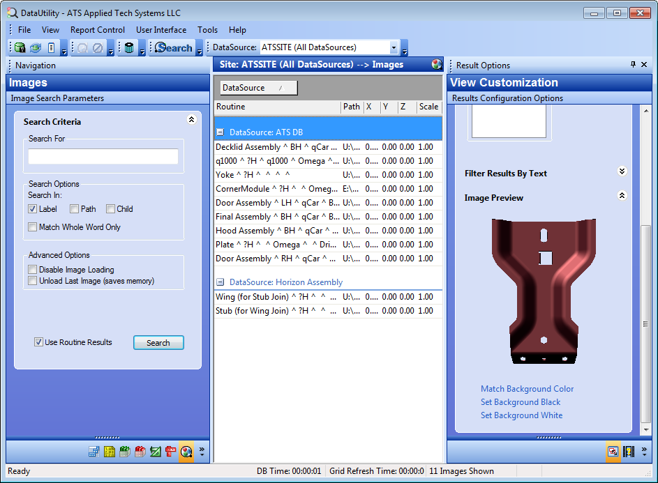 When the Use Routine Results check box is selected, the Image Search will only be done within the routines that were returned for your current Routine Search. If no Routine Search was performed prior to your Image Search, DataUtility will conduct an internal default routine search and use all of the routines found in your selected DataSource. The Use Routine Results option is selected by default.