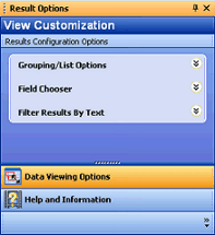 The Result Options window contains all of DataUtility's View Customization and sorting options. Click one of the two tabs on the image below for more information: