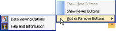 The two tabs on the bottom of the window can be minimized and maximized by clicking on the white dotted bar and dragging up or down. These buttons can also be added or removed using the black arrow menu on the bottom right hand corner of the window and choosing the desired selections from the Add or Remove Buttons menu.