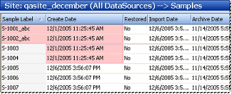 To search for samples created during a certain date range, select the dates of the samples you wish to display. Click on a section with the mouse and then use the selection arrows, the up and down arrow keys on the keyboard, or type values into the date fields to modify the dates.