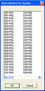 ) button, all changes will be saved in the Database and the Items dialog will be cleared. To remove an item from the Items Marked for Update dialog, click the Revert button (