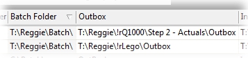 The Outbox folder contains a copy of all the files that DataSmith Batch successfully processed and marked with a date/time stamp. The Outbox is defined as a relative folder by default (Batch\Outbox\), but can be assigned any user-defined directory (local or UNC path).