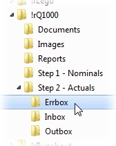 The Errorbox folder stores any files that the DataSmith Document could not process for one reason or another. When a file is moved to the Errorbox, an *.ERR log file is generated to correspond each data file, listing the reason for the error. The Errorbox is defined as a relative folder (Batch\Errbox\) by default, but can be assigned any user-defined directory (local or UNC path).