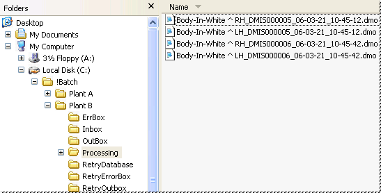 As soon as the measurement machines send data to the Batch Inbox, the data will be transferred to the Processing folder and processed accordingly.