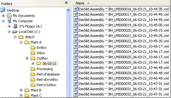 The Inbox, Out Box, and Error Box folders can be created anywhere on a local or network drive. For this specific example, these three folders had been left with the default setting to be created as relative folders to the Batch Job folder. See the topic DataSmith Batch Manager for details on these settings.