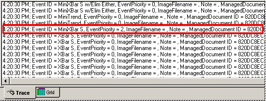 The highlighted line in the above image indicates the event set up for the "MiniXBar S" DataSet used in this example.