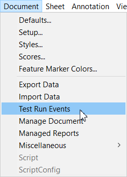 To check to make sure your event property settings are valid, open the Document menu and select Test Run Events.