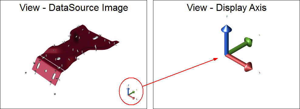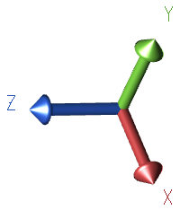 Views have an axis triad that represents the coordinate planes of a 3D image within the view. The Axis will follow the orientation of the image as it is rotated. The properties of the axis triad can be modified in the View annotation properties.