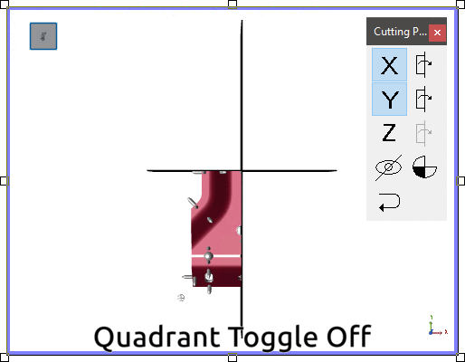 The toggle quadrants button moves all the active cutting planes to the same cutting section. This option is only available if there are at least two cutting planes active.