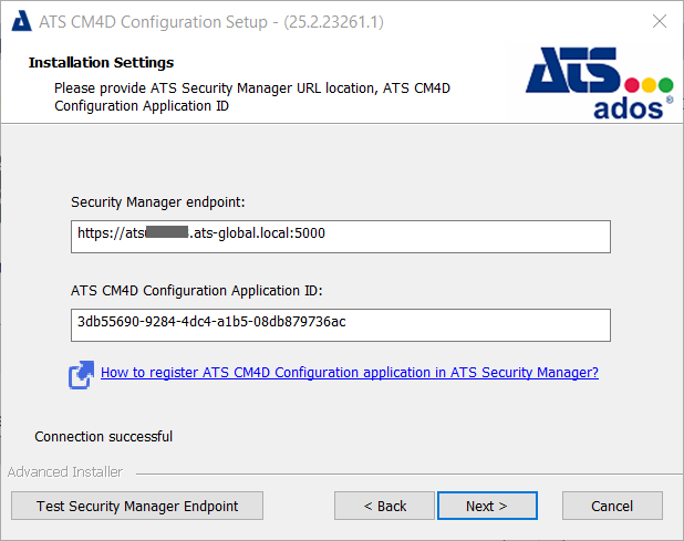 During the installation you need to log in to ATS Security and Configuration Manager and add the Web API URL to the CM4D Plugin. Once the installation is complete, additional security roles are available.