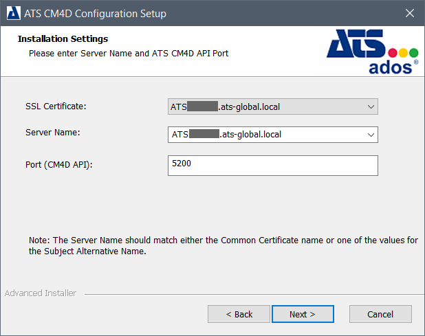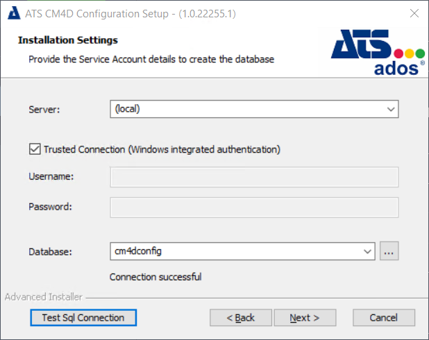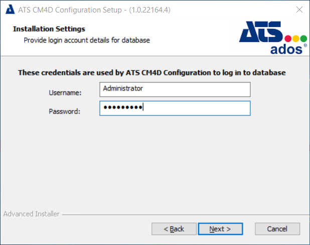 The CM4D API service is installed with the CM4D Configuration installer. The CM4D Configuration install process requires a user with administrative access to ATS Security and Configuration Manager.