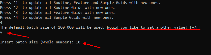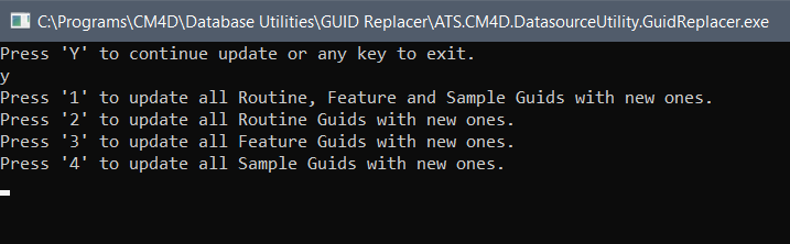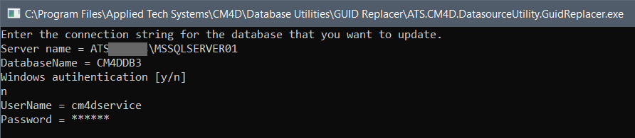 When GUID Replacer is run, type the database connection strings as prompted and hit Enter to continue with the database tasks.