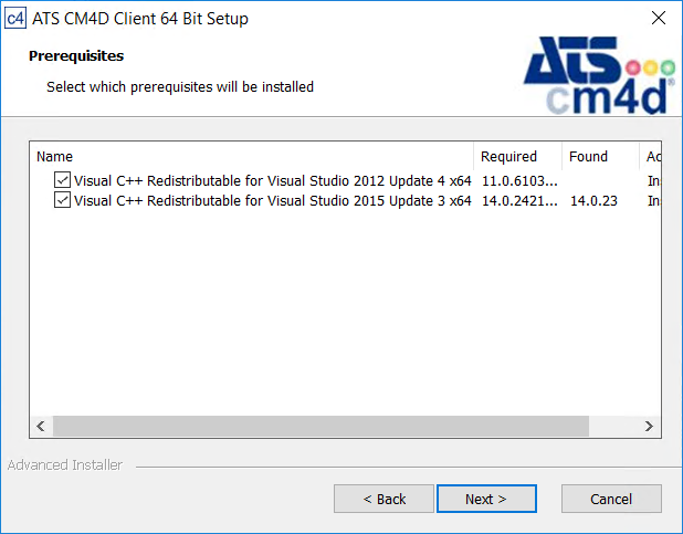 The first part of the installation will check to see if the machine has the required supporting software redistributables. If your machine already has the required versions of the files installed the installer will detect it and move on to the next steps without reinstalling the existing files.