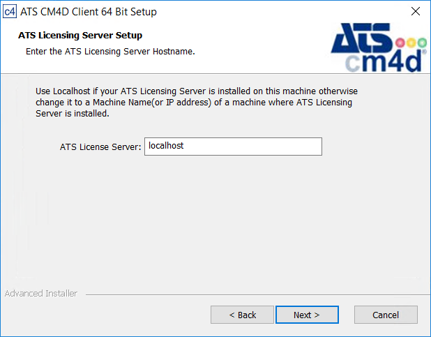 Enter the server name of the ATS Licensing Server or leave as 'localhost' if you plan to copy the license config file from the CM4D Server.