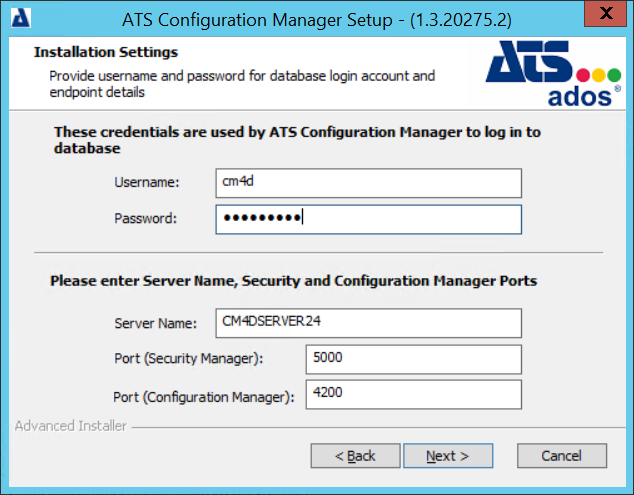 This guide contains the general steps for installing ATS Security and Configuration Manager, which is a pre-requisite to installing the CM4D Configuration plugin.