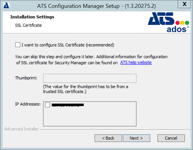 - Run the ATS Security and Configuration Manager install executable (as Administrator).