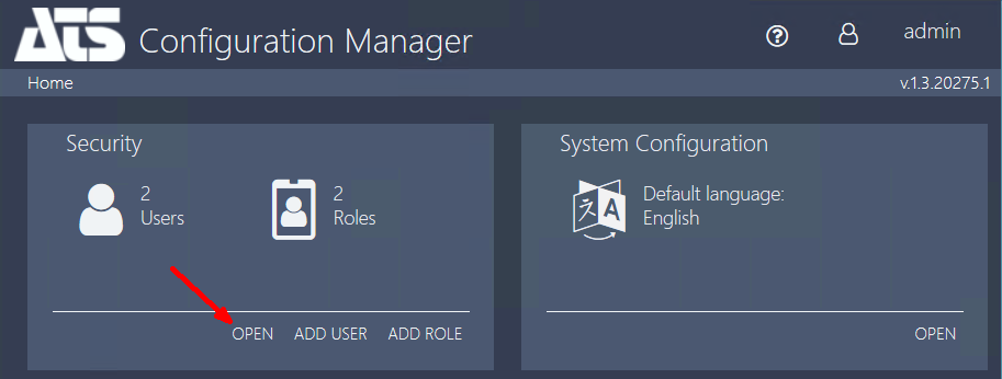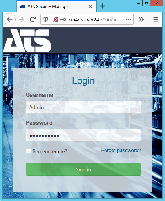 Log in to ATS Security and Configuration Manager