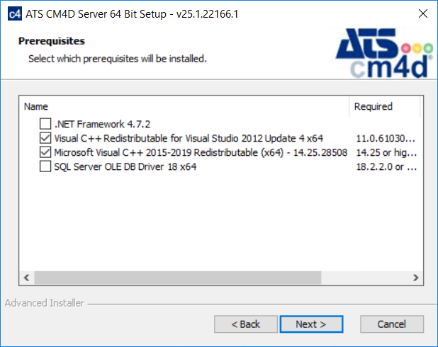The first part of the installation will check to see if the machine has the required supporting software redistributables. If your machine already has the required versions of the files installed the installer will detect it and move on to the next steps without reinstalling the existing files.