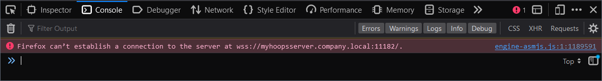 When running Peruse and the 3D Model does not load in the web viewer, you may see the following console error: [Browser] can't establish a connection to the server at wss://myhoopsserver.company.local:11182/.