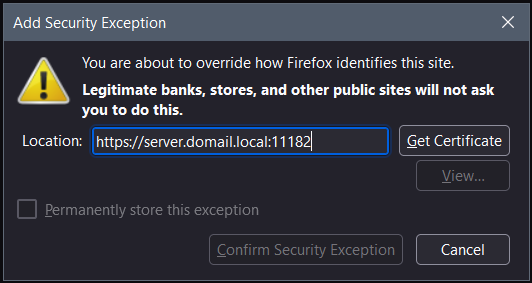 For example, when using the Firefox web browser, the following screen may notify you of a potential security issue: