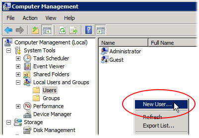 Right-click in the Users window and select New User.