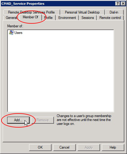 Right-click on the user you just created (e.g., CM4D_Service) and select Properties.
