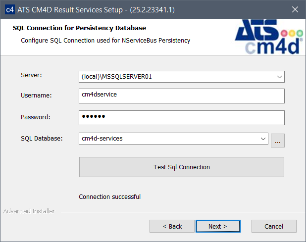 - ATS CM4D Results Loader - Install the CM4D Results Loader service. The Results Loader service updates the Results database with minimum database locks. This service requires a connection to the CM4D Results database and the Transport/Persistence database(s).