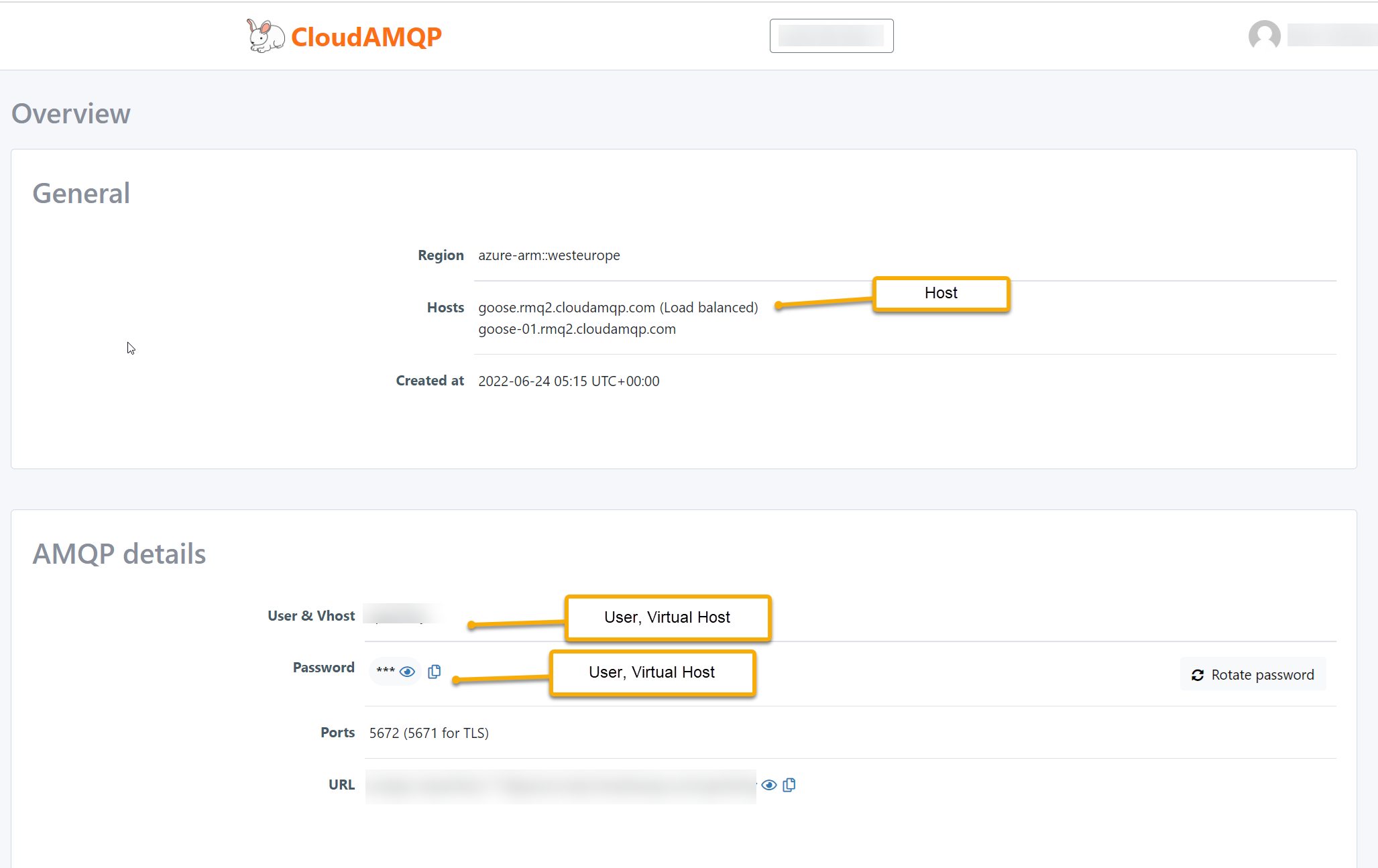 RabbitMQ is a high-performance open-source message broker with wide industry usage. RabbitMQ can be installed on-premises on a server, as a container or used as a service at service providers like CloudAQMP. The free plan is sufficient to test this transport. A RabbitMQ connection string requires a host, username, password and a virtual host. RabbitMQ has a message size limit of 2GB.