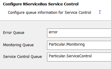 These Queue labels must match the corresponding ServiceControl instances for the selected transport option.