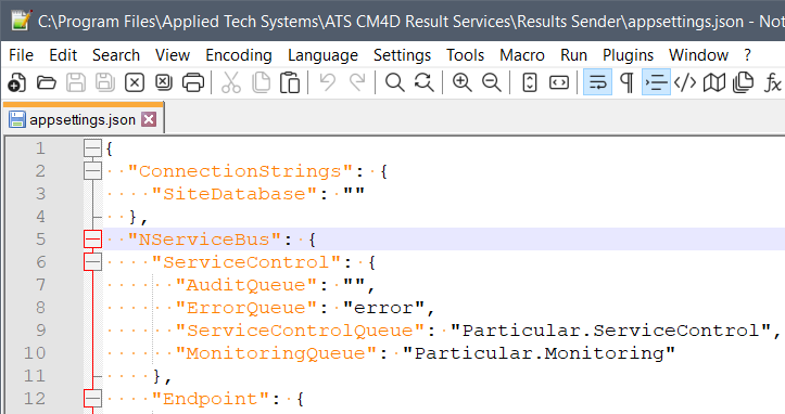 Queues in the appsettings.json file for a Results service (default path: .\Applied Tech Systems\ATS CM4D Results Services\).