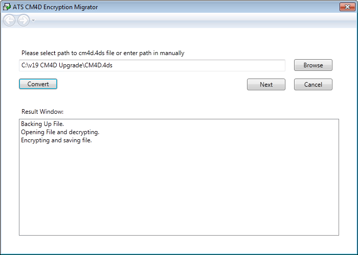 Browse to the CM4D.4ds file that you want to upgrade.