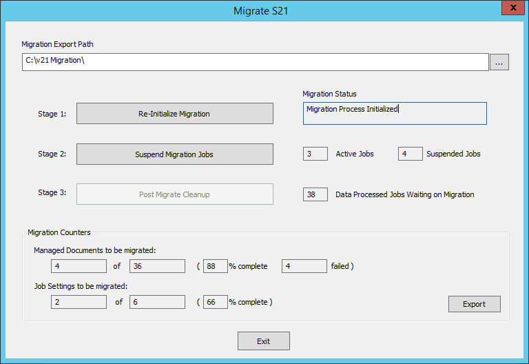 Once Stage 3 is complete, Exit the Migrate S21 dialog.
