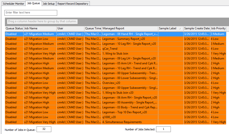 If you have CM4D Scheduler Manager open at the same time that you are using the Migrate S21 dialog, you may not see things change or appear in the CM4D Scheduler Manager interface immediately. After using the Stage 1 or 2 buttons, click Revert on the Job Setup tab in CM4D Scheduler Manager to reload the job information from the Database, or Refresh the Job Queue tab to see the most recent information.
