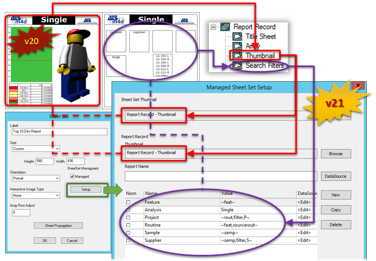 So in v20, you had to have a Report Record SheetSet with a Sheet for the Thumbnail and a Sheet for the Search Filters. All of this information will be moved inside the SheetSet Properties dialog after Migration. In v21, the Thumbnail sheet will be set as your original Thumbnail sheet. Your Search Filters will be copied into the SheetSet Management dialog as individual rows.