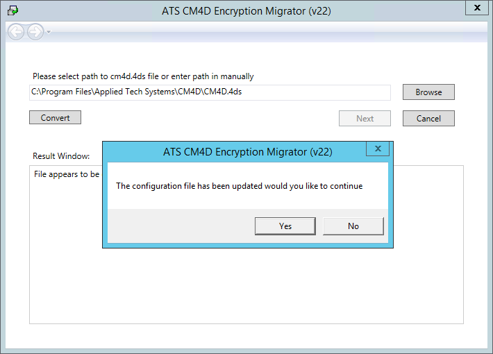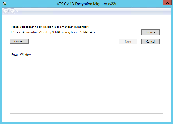 Save a copy of the Cm4d.4ds in a folder with Modify privileges for use in Step 5. Migrate Database Passwords.