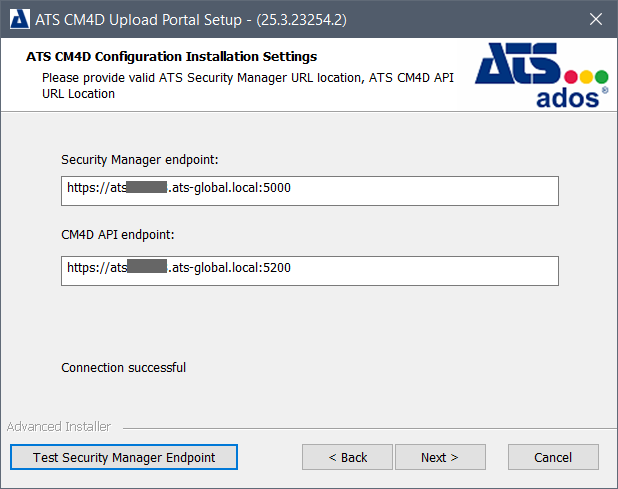 This topic details the steps for installing CM4D Upload Portal and its supporting services. The machine running the Upload Portal services requires a connection to ATS Security and Configuration.