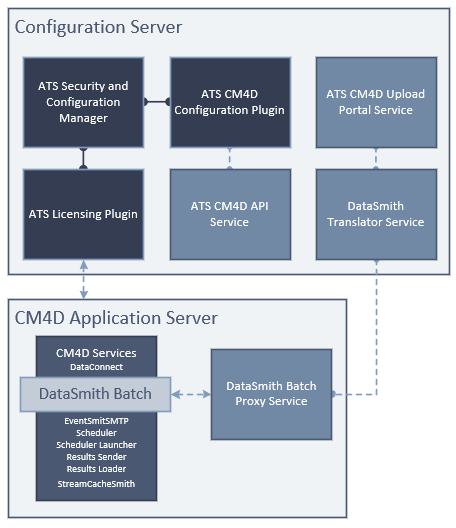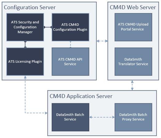 The CM4D Configuration and the CM4D applications can be installed on a single machine. However, with larger organizations that need to support a higher usage may want to distribute the various parts of the system to multiple systems to load-balance and manage resources. The following are just a couple examples of multiple server or client deployments.
