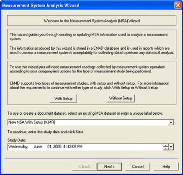 Following are the Study Type criteria for With Setup and Without Setup as described in the MSA Wizard dialog: