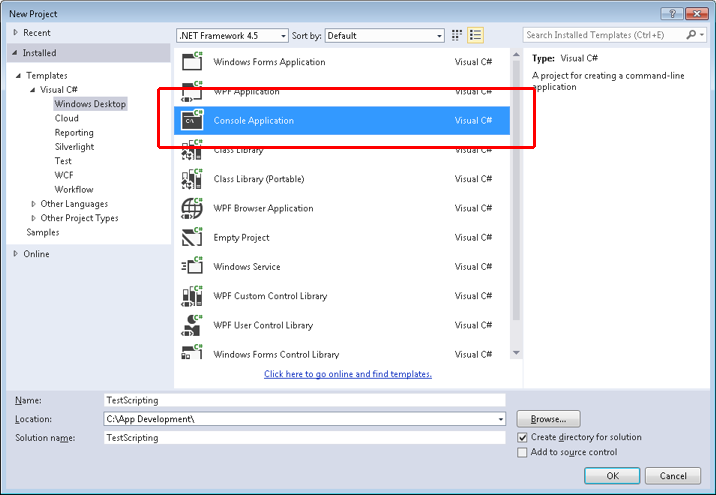 Open Visual Studio and create a C# Console Application.