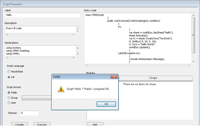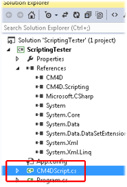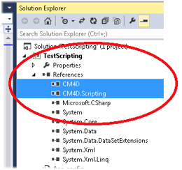 Add references for the CM4D COM Component and for the CM4D.Scripting .NET Assemby.