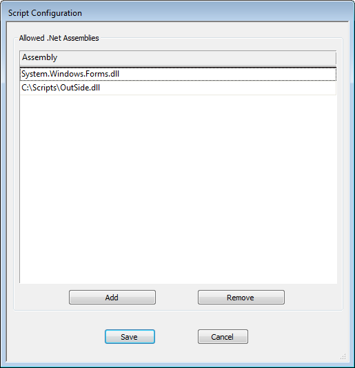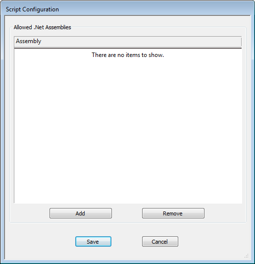 It is the responsibility of the Script Administrator to ensure that all assemblies properly resolve, or to remove invalid assemblies from the list.