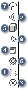 The 3D Viewer Tools are used to manipulate the 3D model in the viewer. The tools are located in a vertical toolbar on the left side of the main view area where the 3D model is displayed. The toolbar becomes semi-transparent when it is not actively in use.