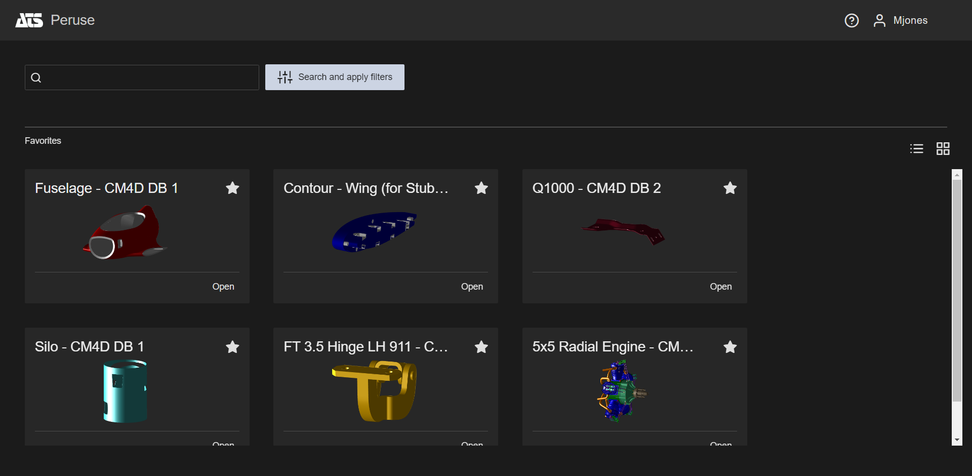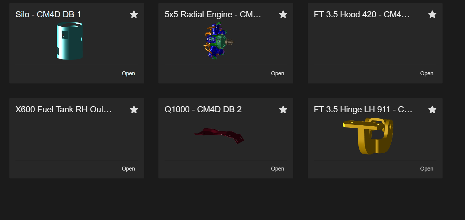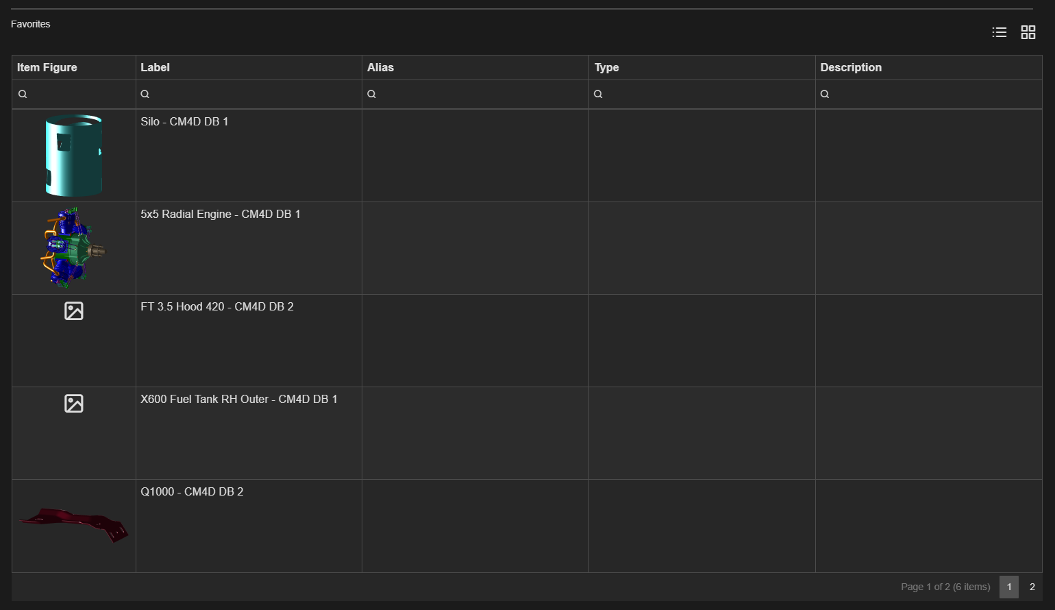 This option displays each favorite as a card with the Routine name, database name and a thumbnail picture of the 3D part model. If no thumbnail is available, the card contains only the label.