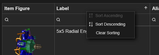 Click on the column header to sort rows by the column values, ascending/descending (/). Alternately, right-click the header and select a sorting option from the menu.