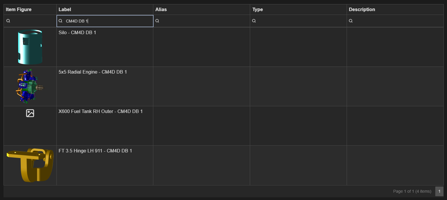 For example, type a CM4D Database name into the search field in the Label column to filter out data from a single datasource.