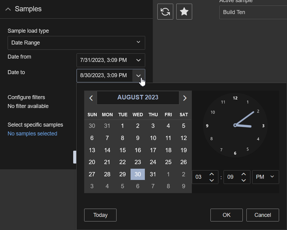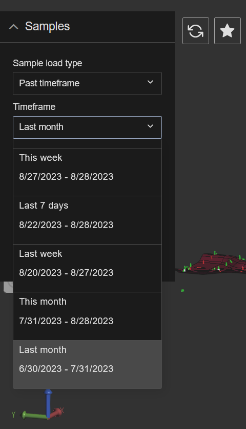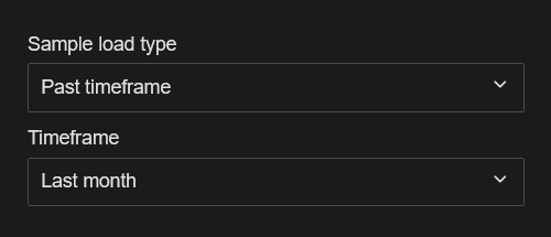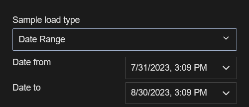 Load samples based on a time frame. The time frame selected is based on the date at the time the data is loaded. Each time frame option displays a preview of the dates included at the time of current load.