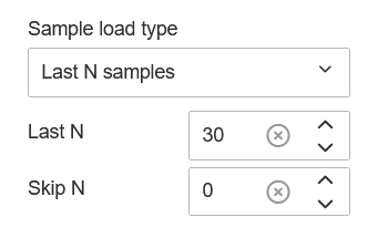 Load the last set number of samples according to creation date starting with the current date and counting backwards. You can also skip a set number of samples to skip before starting the count back from the last sample.