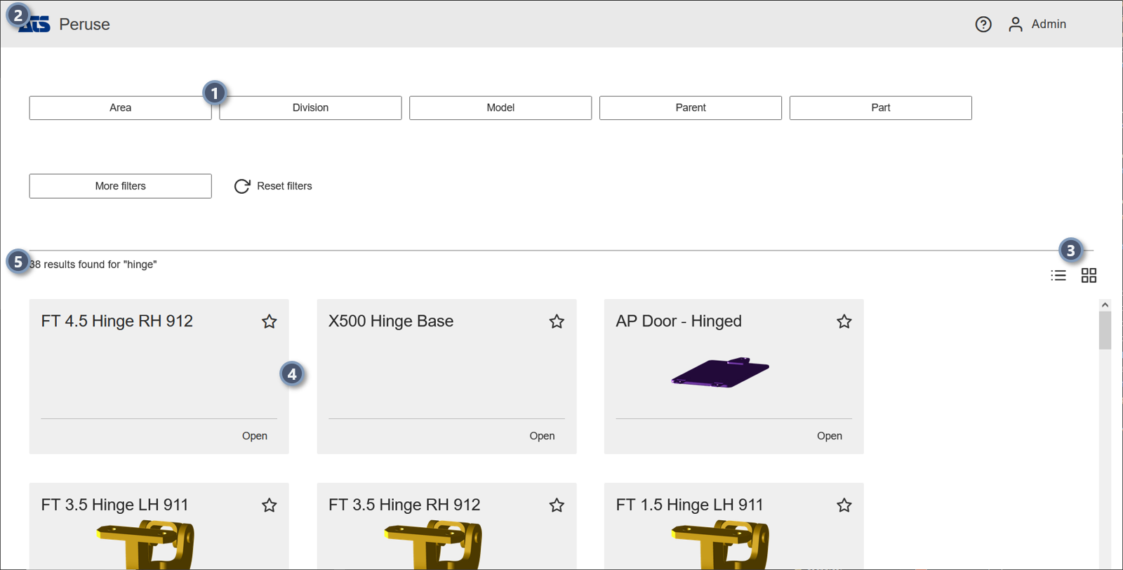 | 5. Layouts | Predefined annotation placement on the screen around the 3D model in the 3D Viewer area. Layouts can vary in number of annotations, where the annotations are drawn and how the annotation are arranged from page to page. The option called 'Fullscreen' is available without any Admin Configuration, and shows only the 3D Viewer without any annotations. | |
